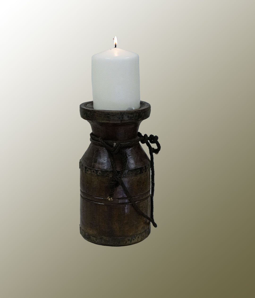Wooden Candle Stand. A001 -Exquisitely crafted, this wooden candle stand exudes timeless elegance. where each piece was thoughtfully created to balance form and character. The subtle imperfections and delicate detailing evoke a sense of history, offering a distinguished charm that enhances any interior with quiet sophistication. It's approximately 20 - 30 years old.