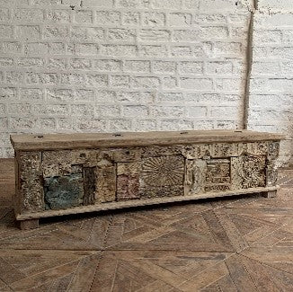 PA15976 - This vintage Indian beautifully hand-carved box, made from reclaimed wood, showcases intricate craftsmanship and timeless charm, making it a perfect blend of heritage and sustainability.