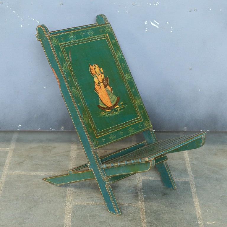 PA25684 - A new Indian wooden chair, crafted from mango wood and beautifully painted, blends vibrant colour and intricate craftsmanship.