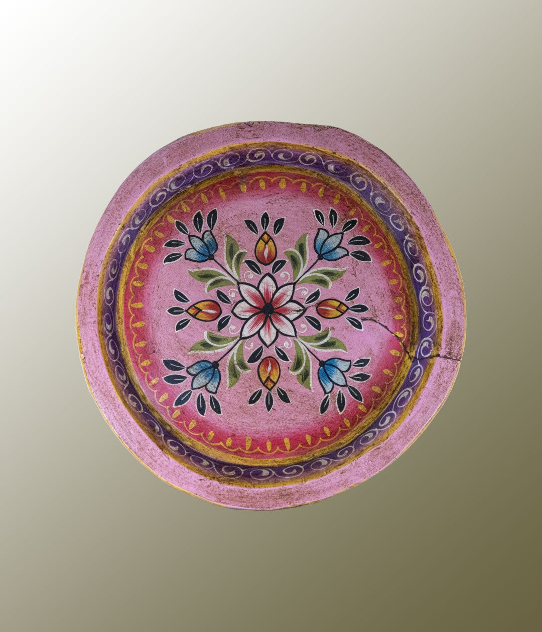 Wooden Painted Parat. A037 - Infuse your space with a vibrant burst of colour and culture with this exquisite Wooden Painted Parat. Traditionally used in many cultures as a serving tray or decorative piece, this hand-painted parat is a stunning blend of functionality and artistry. The detailed, intricate patterns and bold colours showcase the skill of skilled artisans, transforming a simple utilitarian item into a statement piece for any room. Crafted from high-quality wood, the parat’s sturdy construction ensures both durability and versatility. Whether used as a serving tray, an accent piece in your living room, or a centrepiece on your dining table, its artistic design adds a unique flair to your décor. The rich hues and delicate brushwork create a harmonious and inviting atmosphere, making it a perfect addition to both traditional and modern interiors. This Wooden Painted Parat serves as both a functional item and a work of art, adding warmth and character to your home with its timeless beauty. It's approximately 70 -80 years old.