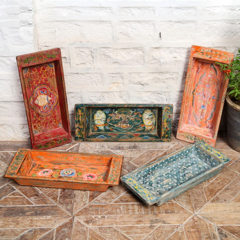 PA16870 - This Indian hand-painted individual tray, crafted from reclaimed wood, features vibrant, intricate designs that showcase traditional artistry while adding a sustainable and colourful touch to your home.